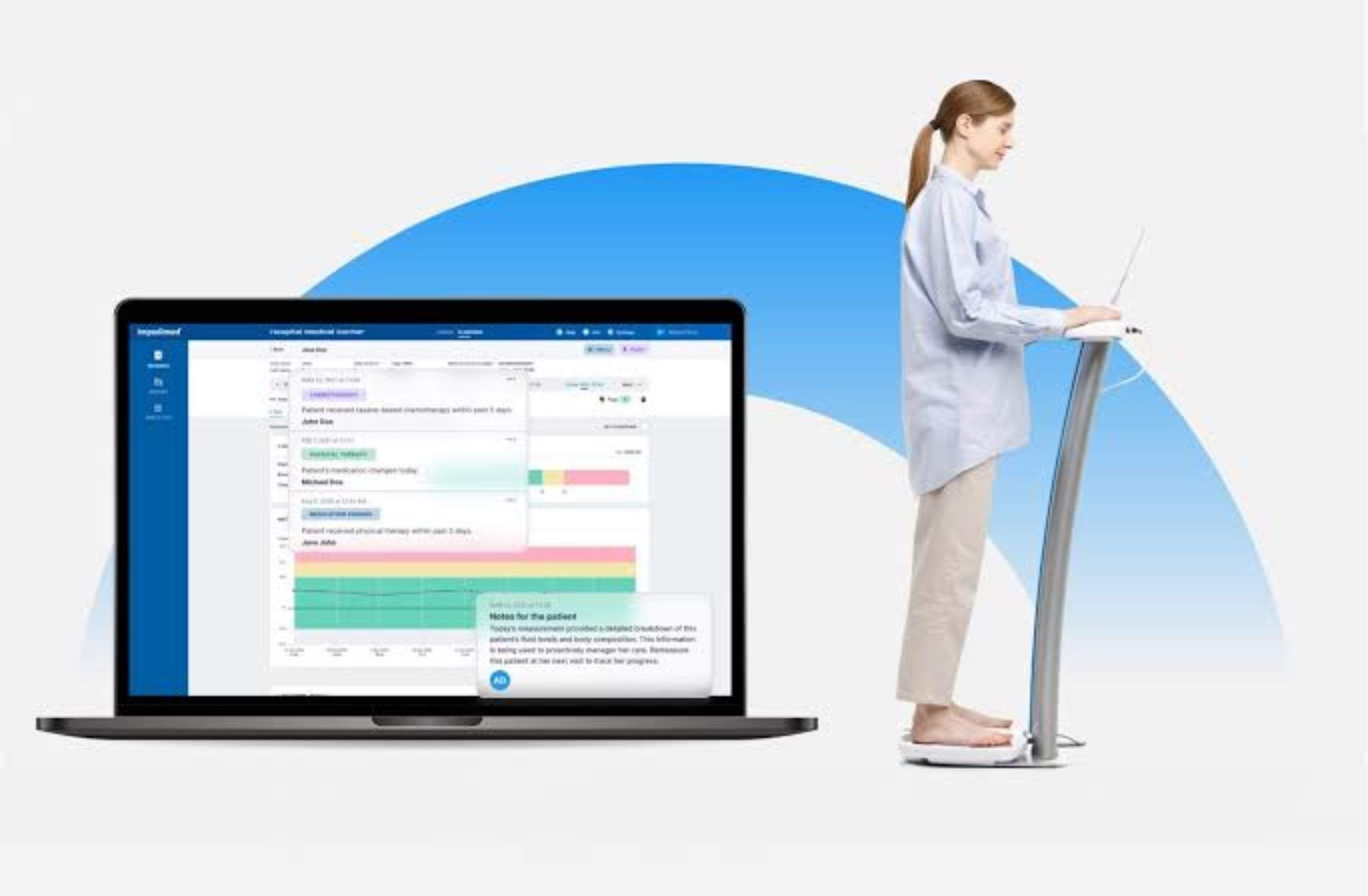 To screen for lymphoedema the client removes their shoes and socks and any heavy jewelry, then stand on the device. The screening takes 30 seconds